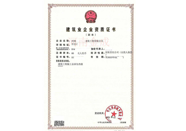 • 建筑業企業資質證書副